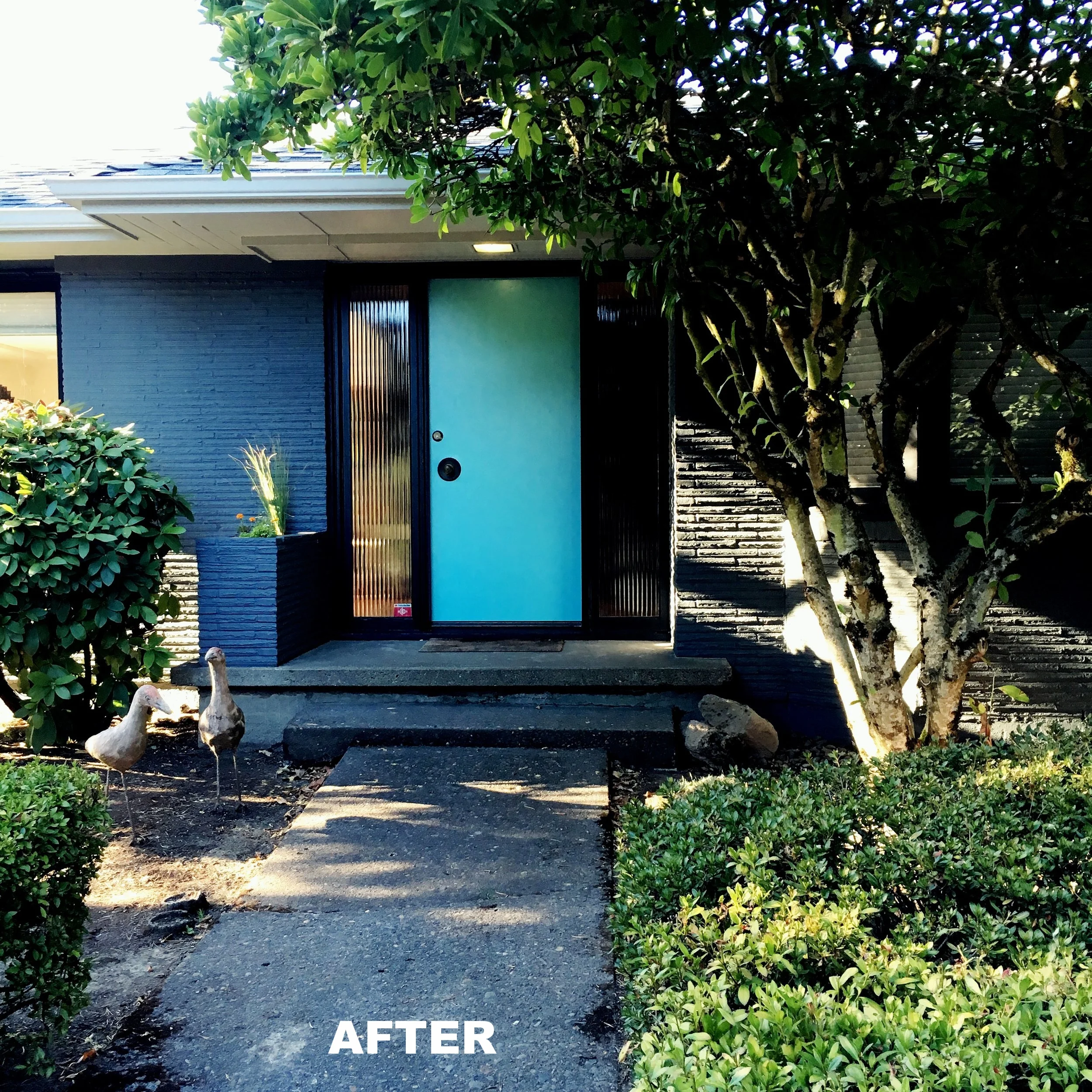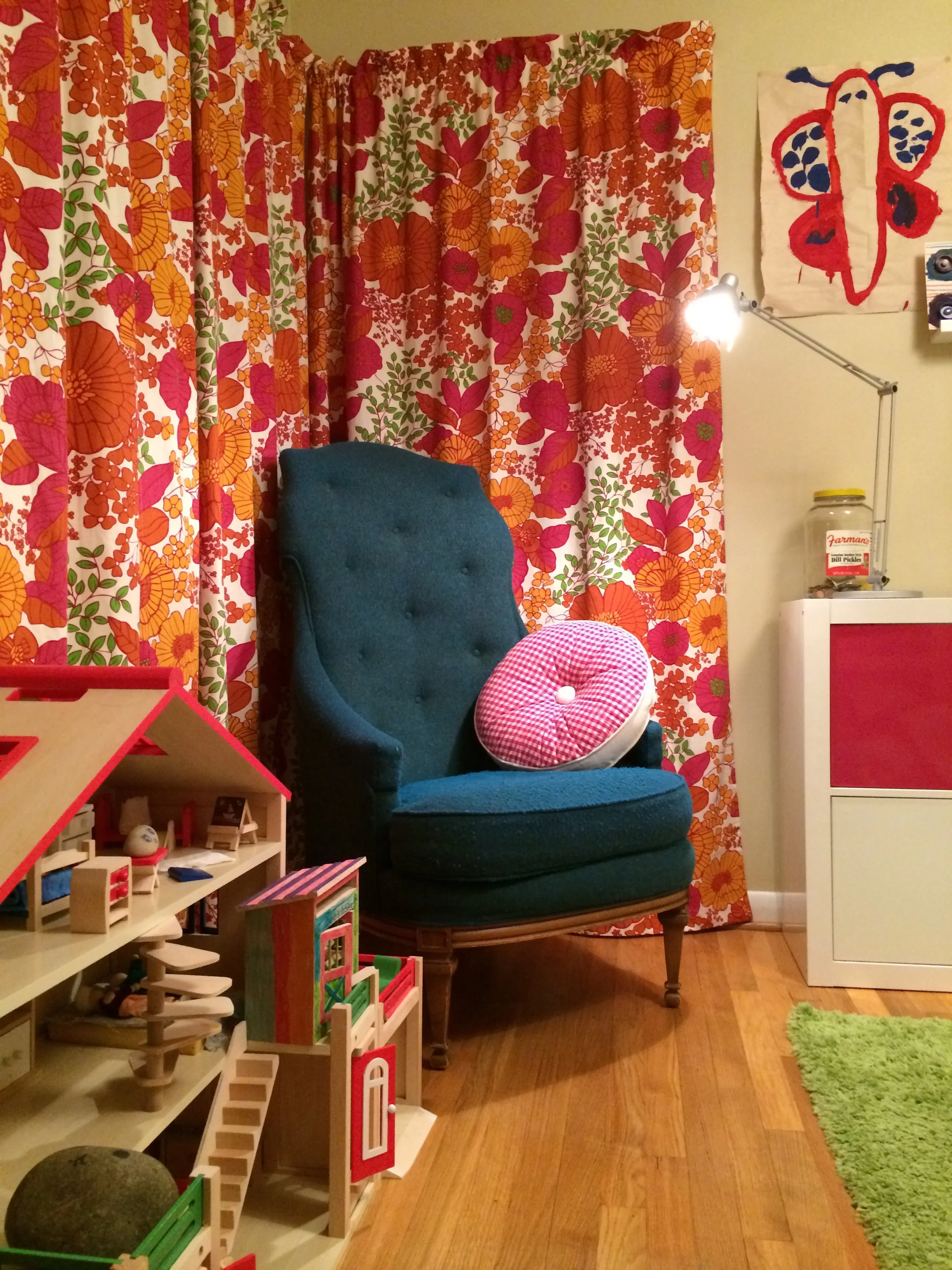 Playful punches of color and pattern define this update to a 1960 mid-century modern home. The project included a refresh of the family's main entertaining spaces, a child's bedroom and exterior house colors. Interior work included color selection, coordination of new accent pieces with vintage family heirlooms, sourcing art works & furnishings, selecting light fixtures and final project coordination. Exterior work included a 4 paint scheme color selection, coordination with painter, site furniture selection and photo styling.